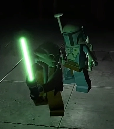 Choose a flying bounty hunter (for example, Jango Fett) and go directly to the well-lit room. Behind the well to the left you will find a Bounty Hunter panel that opens the metal door. Inside the room on the other side, pull the nearby lever and you will turn on the light. Kit Fisto is to the left of the pool table. Walk towards him to complete the mission.
